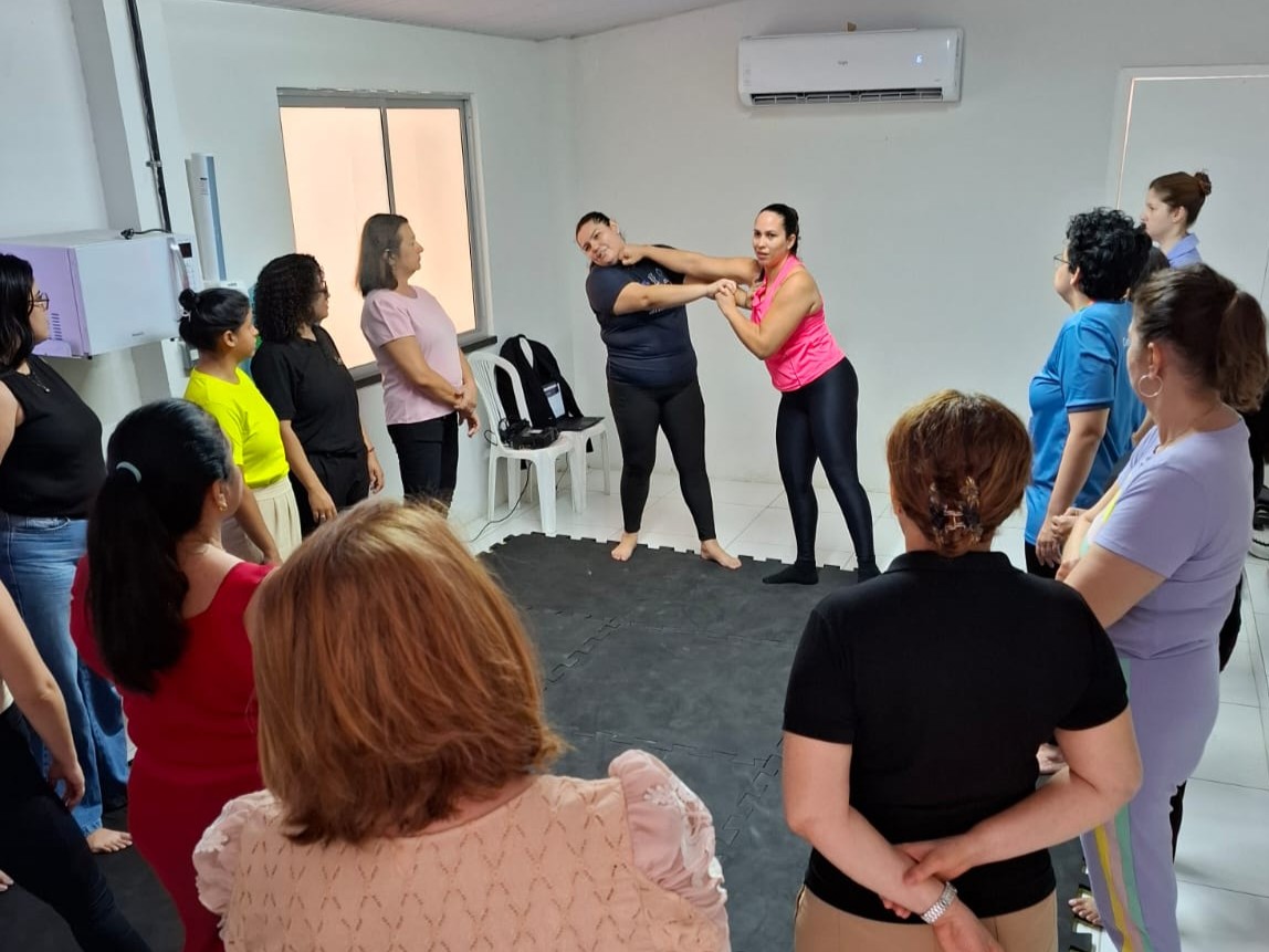 Colaboradoras do Centec participaram nesta quarta-feira, 29, de um aulão de defesa pessoal, com orientações sobre como avaliar cenários de risco de violência e demonstração de técnicas para imobilizar agressores.